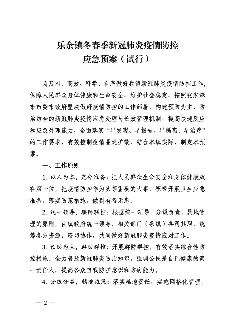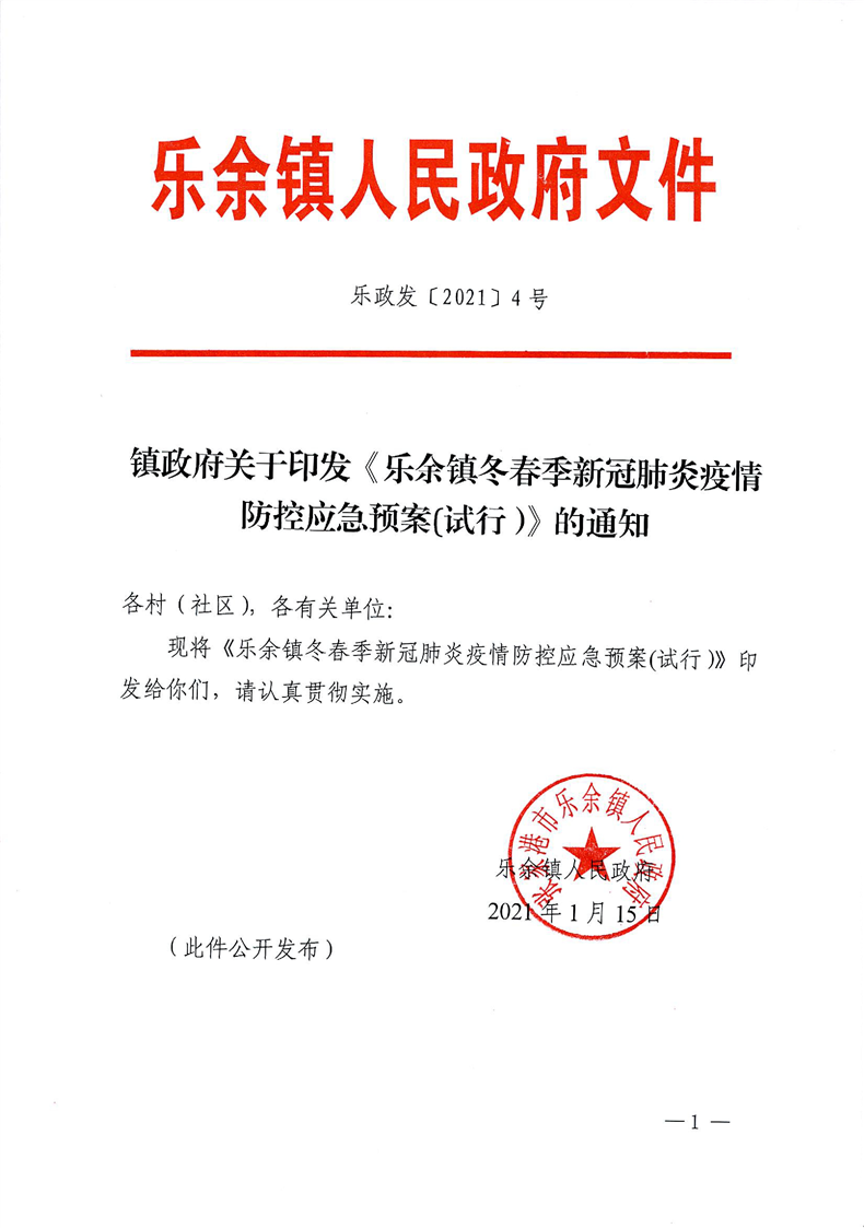 《樂余鎮冬春季新冠肺炎疫情防控應急預案(試行)》
