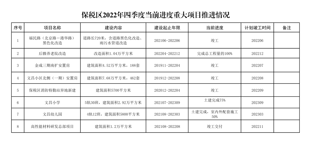 2022年保稅區第四季度重大項目推進情況