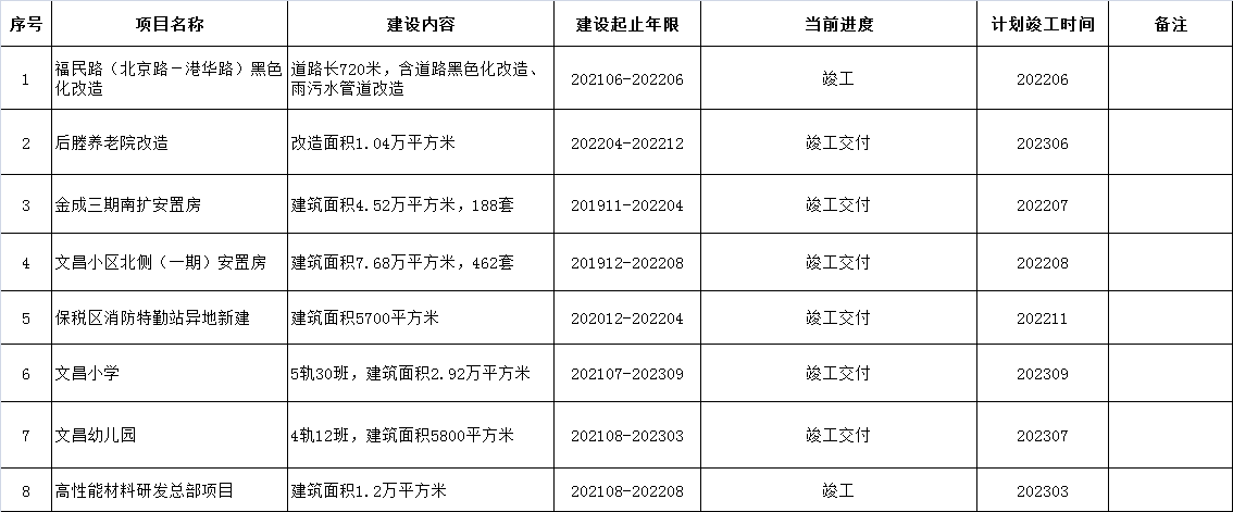 2023年保稅區第三季度重大項目推進情況