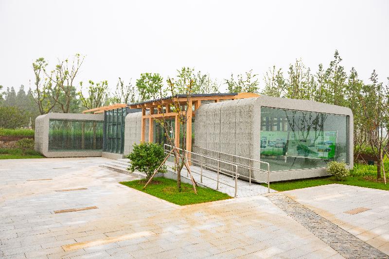 “3D建筑打印”項目:在配套建筑的設計上探索固廢材料的再利用和裝配式節能建筑等生態技術。采用以鋼鐵冶煉產生的固廢鋼渣為原料的3D建筑打印技術,生產出硬度不低于傳統混凝土硬度的管理用房屋、生態廁所、花壇、座椅、景觀綠化墻等環保設施,應用于“張家港灣”生態修復工程中,大幅縮短工期,減少對周邊灘涂環境的破壞。