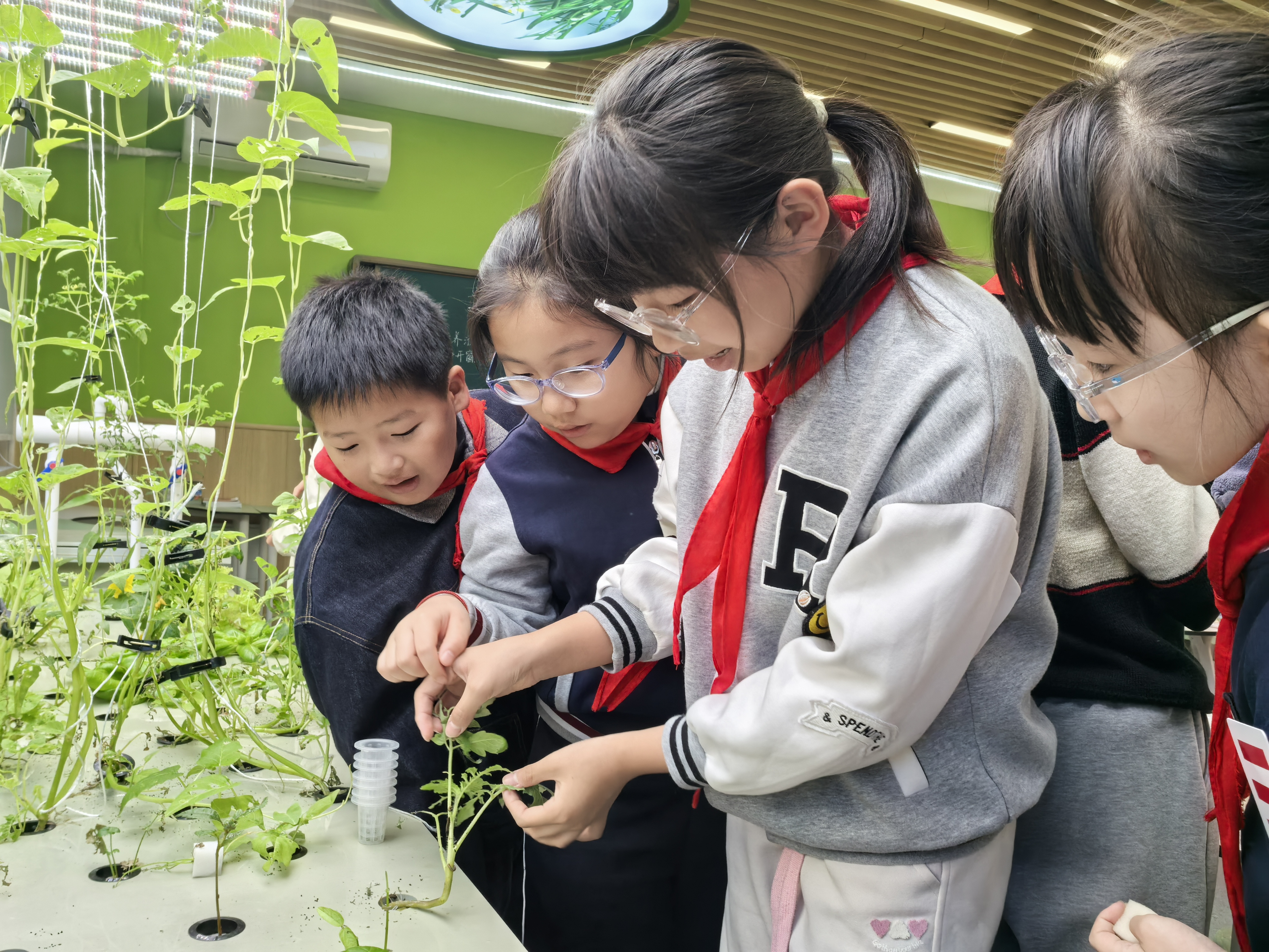 以人工智能為核心,學校構建多元化沉浸式科創學習場景,推動靜態知識向動態實踐轉化。“云耕青禾社”智能種植教室內,智慧生態育苗箱、探究箱等設備內置紅外攝像頭與傳感器,實時捕捉土壤濕度、光照強度等關鍵數據,通過編程實現自動澆水、補光的智能調控。“水耕瓜果種植系統”支持學生開展項目化學習,運用人工智能算法分析數據對植物生長的影響,結合物聯網云端監控,讓種植過程成為“思考的實驗室”與創新思維的“孵化箱”。校園物聯網氣象站支持掃碼查看實時天氣數據,三四年級學生在科學課上自制天氣日歷,分析張家港天氣變化規律并編制實驗報告。同時,學校全力打造近300平的“人工智能創客工坊”,集電子焊接、3D打印、激光切割、機器人編程、作品展示于一體,構建“教、學、做、創、秀、賽”一體化AI學習空間,為青少年發明創新提供全方位支撐。