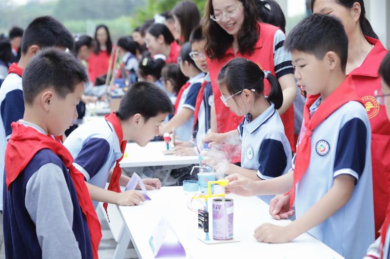 學校打破校園與家庭的壁壘,搭建家校共研共育平臺,讓科創教育延伸至生活場景。科學實驗技能比賽中,家長志愿者化身“專業評委”,從器材認知、操作規范、數據記錄等維度細致點評,既讓家長深度參與孩子成長,更以專業評價聯動推動家校科創教育目標與方法同頻共振。每年九月開學季的“科技大篷車”巡展、家庭創客比賽等活動,鼓勵親子搭檔將奇思妙想轉化為實物作品,跨校區開展展示交流,學生化身“小小講解員”,生動闡述創作理念與科學原理,讓家庭成為科創實踐的重要延伸陣地。此外,學校在建的共享實驗室配備液壓機械臂、太陽能能源小屋等二十余種器材,打造自由有趣的互動探索空間,有效激發學生科學興趣,錘煉動手能力與探究精神。