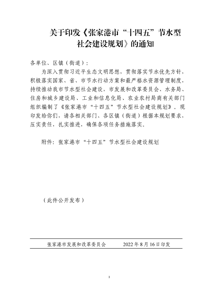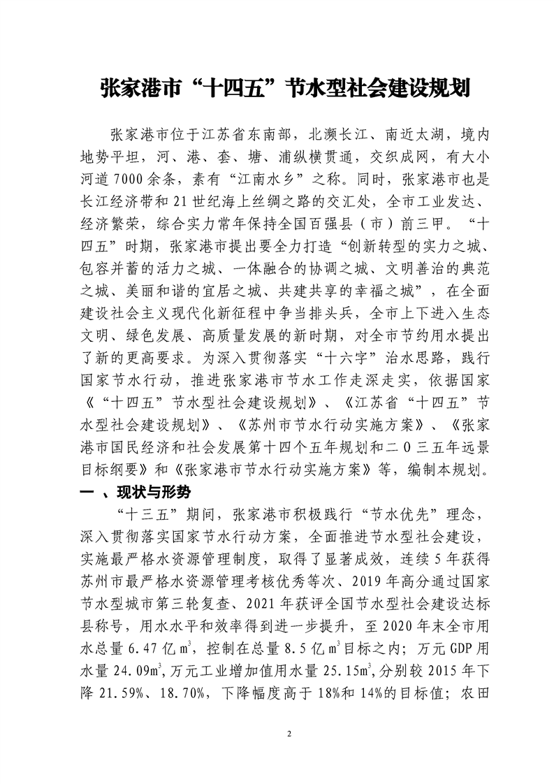 張發改能源〔2022〕38號關于印發《張家港市“十四五”節水型社會建設規劃》的通知